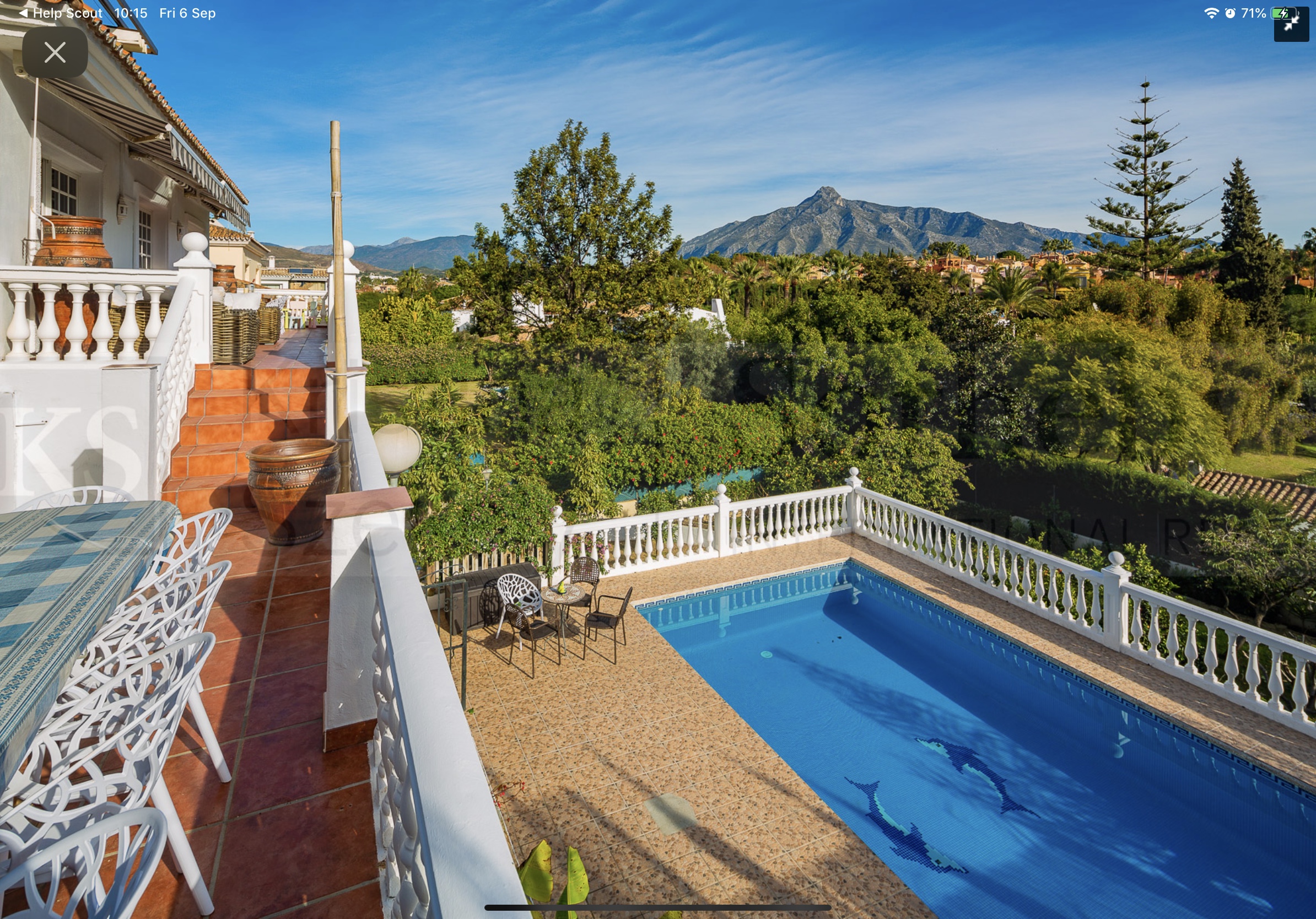 The villa is in a fantastic and centrally located in a cul de sac at the end the road one way in and one way out. You can park on the drive or directly outside. There are cameras all around the villa providing peace of mind. There are CCTV cameras inside the communal areas. However, we do not have access to them, only the CCTV company when an alarm is triggered, but you do have the option of simply sliding the lens cover closed and no images can be taken by the alarm company but the PIR and alarm will still work. It's a simple fob to arm and disarm and you just offer the fob up to the control box at the front door. We are the closest villa to Central Plaza and have stunning views with Aloha to one side with an abundance of bars, restaurants and pool clubs, numerous golf courses. The port and beach the other. Looking from the front is Campana and to the back is Marbella East and Marbella Old Town.... great to visit by boat from Puerto Banus for around €10