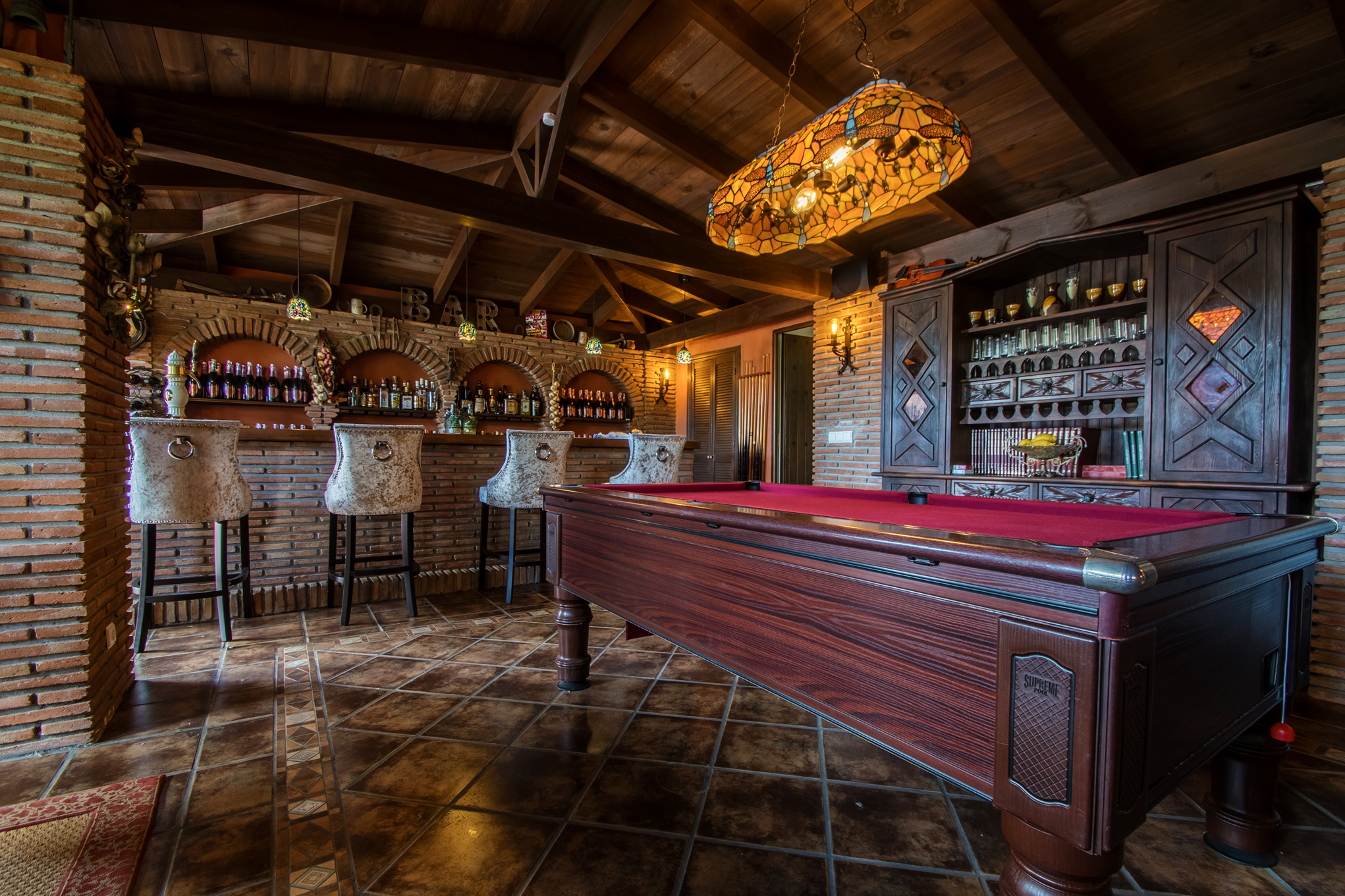 The villa boasts its own English pub-style bar in the basement, simply stunning with Bang & Olufsen music system (syncs to anyone’s phone), pool table, darts, 4K cinema area (9ft screen) with a selection of new releases and classic films, sport, hundreds of UK TV channels (Spanish and Russian if required) and doors opening out onto the outdoor pool area.